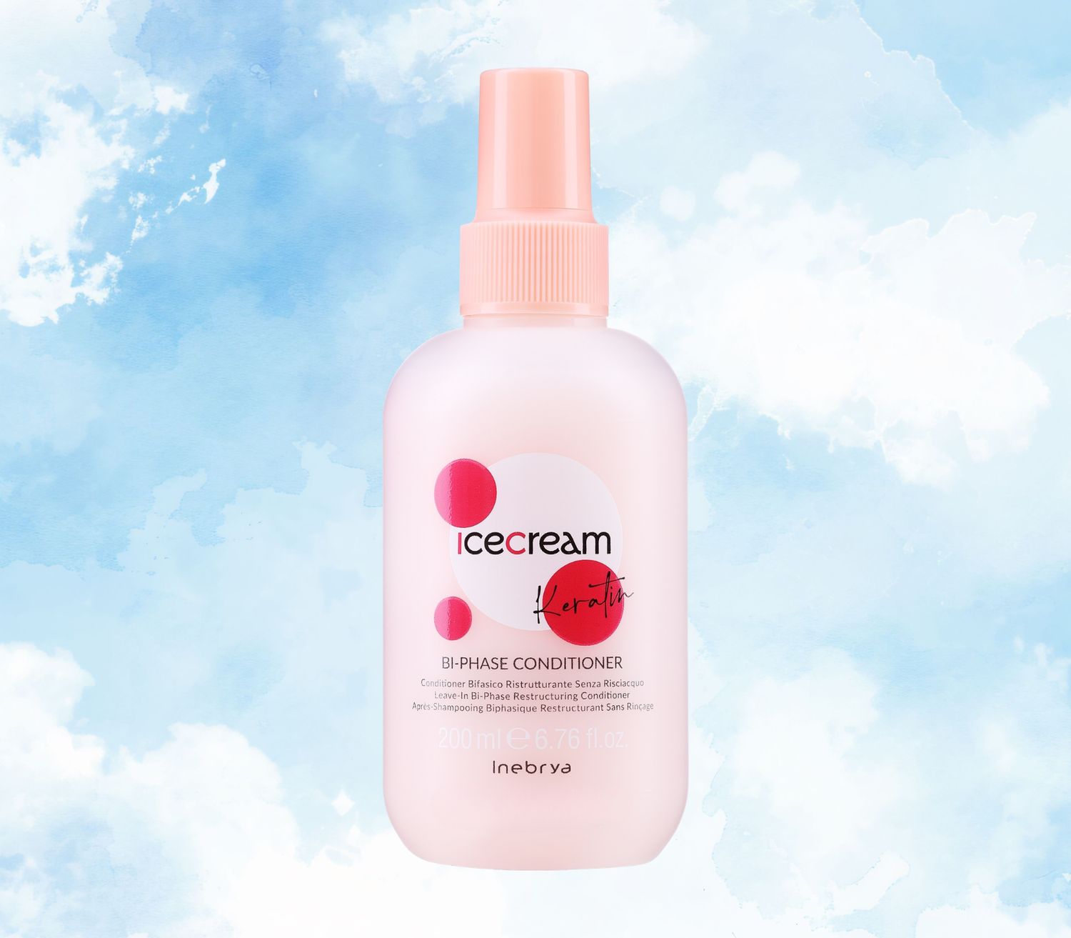 Inebrya Ice Cream Keratin Bi-Phase sprej za lase je profesionalna rešitev za takojšnjo obnovo in zaščito las. Njegova dvofazna formula, obogatena s keratinom, globinsko neguje, krepi strukturo las ter jim vrača mehkobo in sijaj. Sprej učinkovito razčesava, zmanjšuje lomljenje in ščiti lase pred zunanjimi vplivi, ne da bi jih obtežil. Idealen je za suhe, poškodovane ali kemično obdelane lase, ki potrebujejo dodatno nego in revitalizacijo.