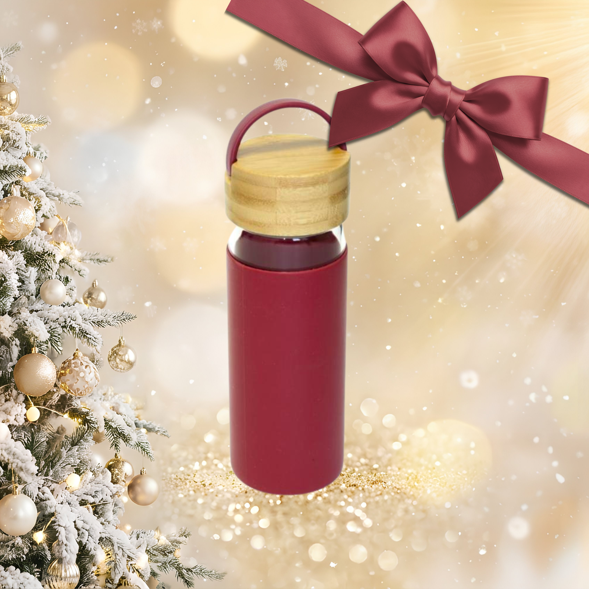 Steklena flaška/steklenica za vodo 0.48L. Primerna za toplo in hladno tekočino. Z bamboo pokrovom in ročajem za nošenje.