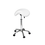 Delovni stol Organic. Eleganten in ergonomičen stol oblikovan v obliki sedla za maksimalno udobje. Opremljen z dvižno-spustnim sistemom. Sedišče oblazinjeno in oblečeno v umetno usnje. Enostavno za čiščenje. Kromirano podnožje. Na voljo v beli ali črni barvi.