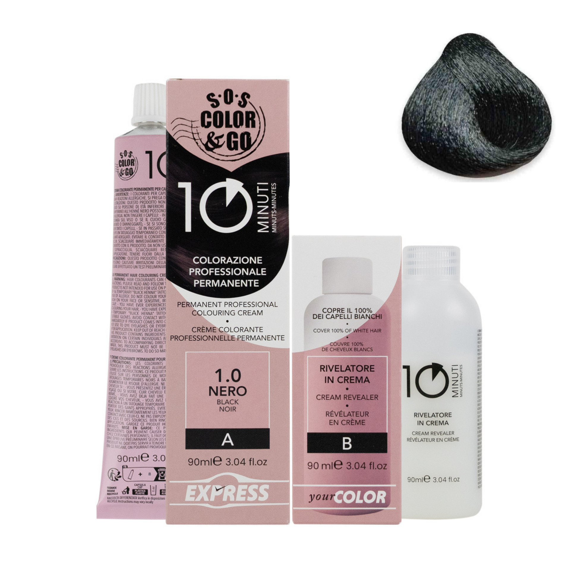 SOS Color & Go 10 Minuti je profesionalna Alama obstojna barva za lase z le 10 minutnim časom nanosa. Izjemno hitro delovanje 100-odstotne veganske formule na osnovi murumuru masla in olja grozdnih pečk zagotavlja hitre profesionalne rezultate s popolnim prekrivanjem sivih las za briljantno, intenzivno in dolgo obstojno barvo. Izbor 12 odtenkov omogoča široko paleto barva, ki vedno zagotavlja dolgotrajen in naraven rezultat.